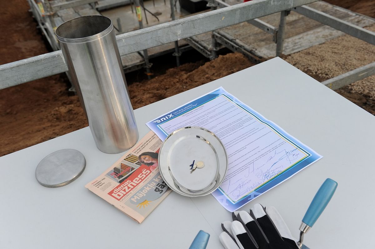 Kapsulā tika ievietots vēstījums nākamajām paaudzēm, lidostas 40. gadu jubilejai veltīta nozīmīte, īpašā eiro monēta un laikraksta Dienas Bizness ceturtdienas numurs.