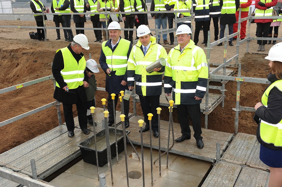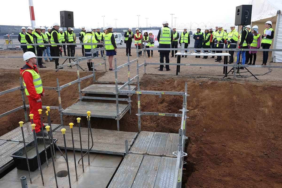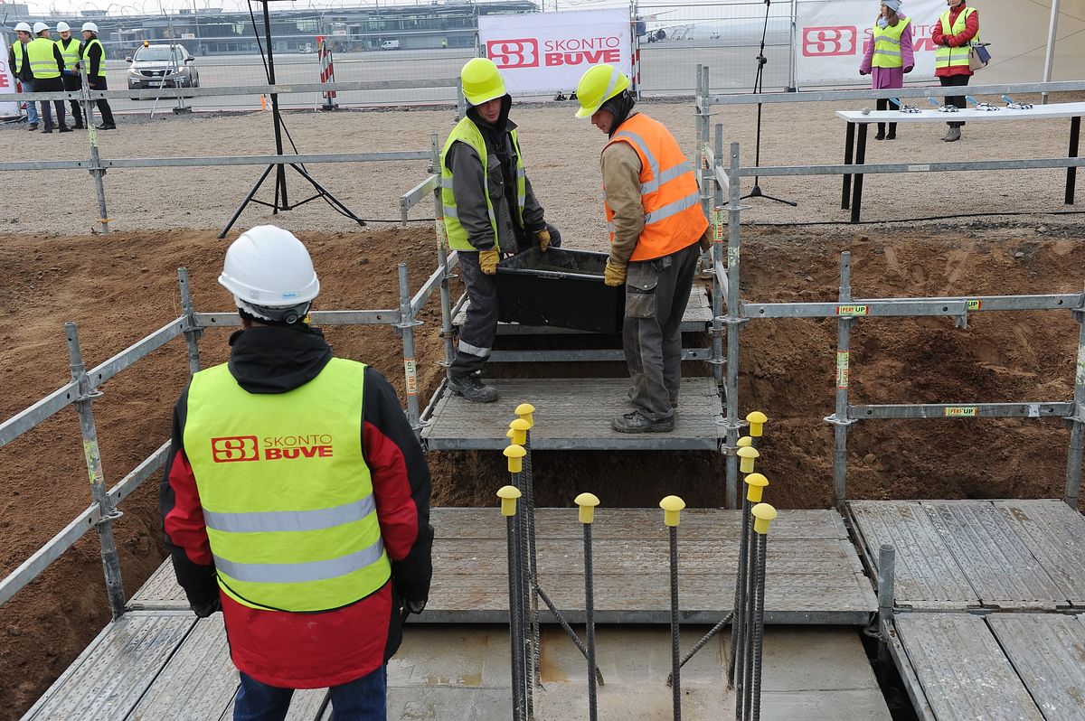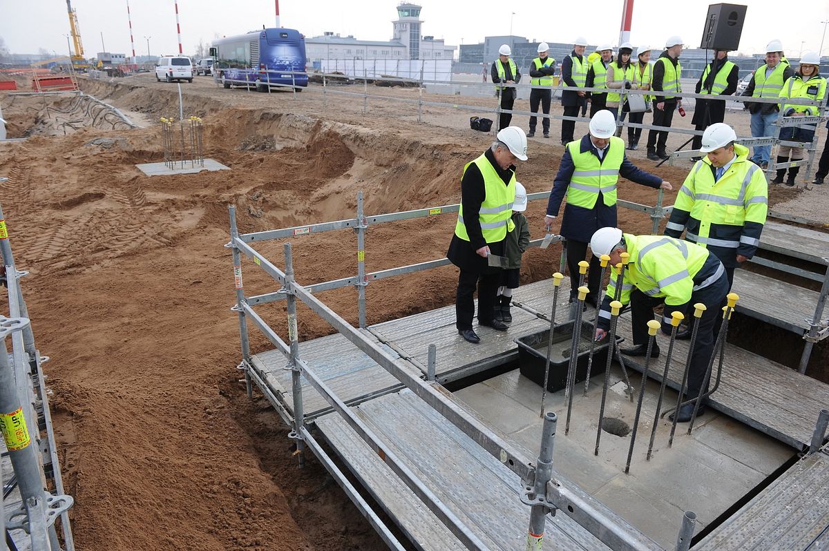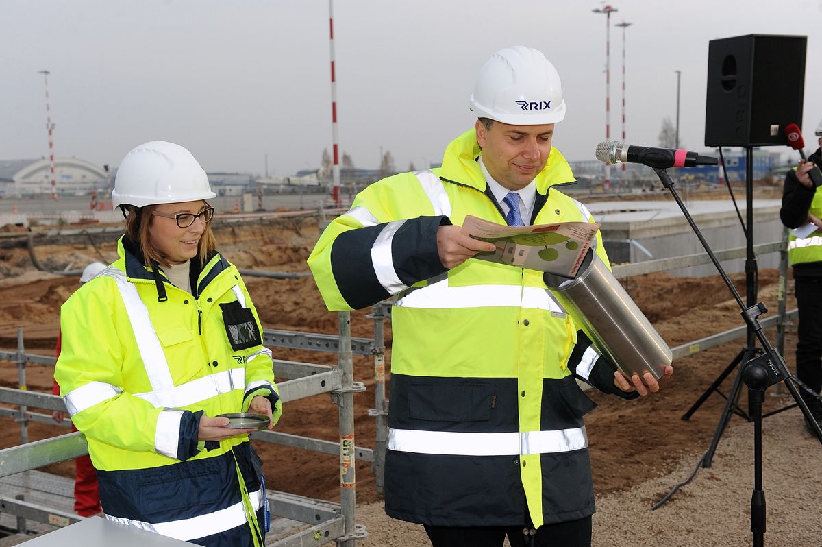 Ceturtdien starptautiskās lidostas Rīga valdes priekšsēdētājs Aldis Mūrnieks kopā ar ēkas projekta autoriem un būvniekiem svinīgi atklāja jaunās piestātnes ēkas būvniecības uzsākšanu, iemūrējot kapsulu ar vēstījumu nākotnei būves pamatos.