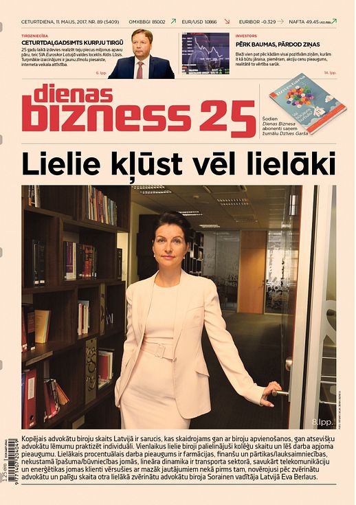 Sorainen vadītāja Latvijā Eva Berlaus apstiprina, ka pērn populārākā juridiskā joma arvien bijusi uzņēmumu apvienošana un iegāde, ģenerējot darbu konkurences tiesību un korporatīvo konsultāciju speciālistiem.
