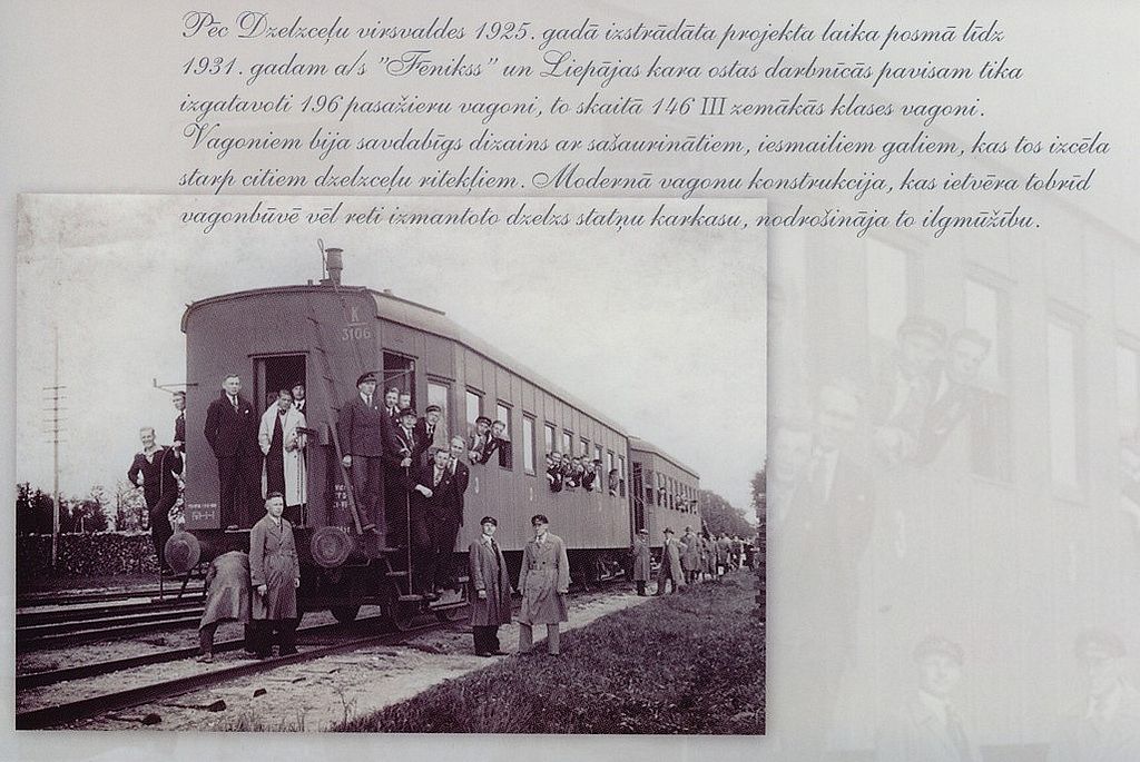 Pastmarkas un pastkartes autors ir mākslinieks Ludis Danilāns. Gan uz pastmarkas, gan pastkartes attēlots 20. gadsimta 20. gados Latvijas Republikā tapuša pasažieru vilciena zemākās – 3. klases – vagons. Pēc valsts Dzelzceļa virsvaldes 1925. gadā izstrādāta projekta līdz 1931. gadam akciju sabiedrībā Fēnikss un Liepājas kara ostas darbnīcās tika izgatavoti kopumā 196 pasažieru vilcienu vagoni, tajā skaitā 146 bija tieši 3. klases vagoni. Tiem bija raksturīgs savdabīgs dizains ar sašaurinātiem, iesmailiem galiem, kas tos izcēla starp citiem dzelzceļa ritošā sastāva objektiem. Savukārt vagonu ilgtsošu lietošanu ekspluatācijā nodrošināja modernā konstrukcija ar tolaik vagonbūvē vēl reti izmantotajiem dzelzs statņu karkasiem.