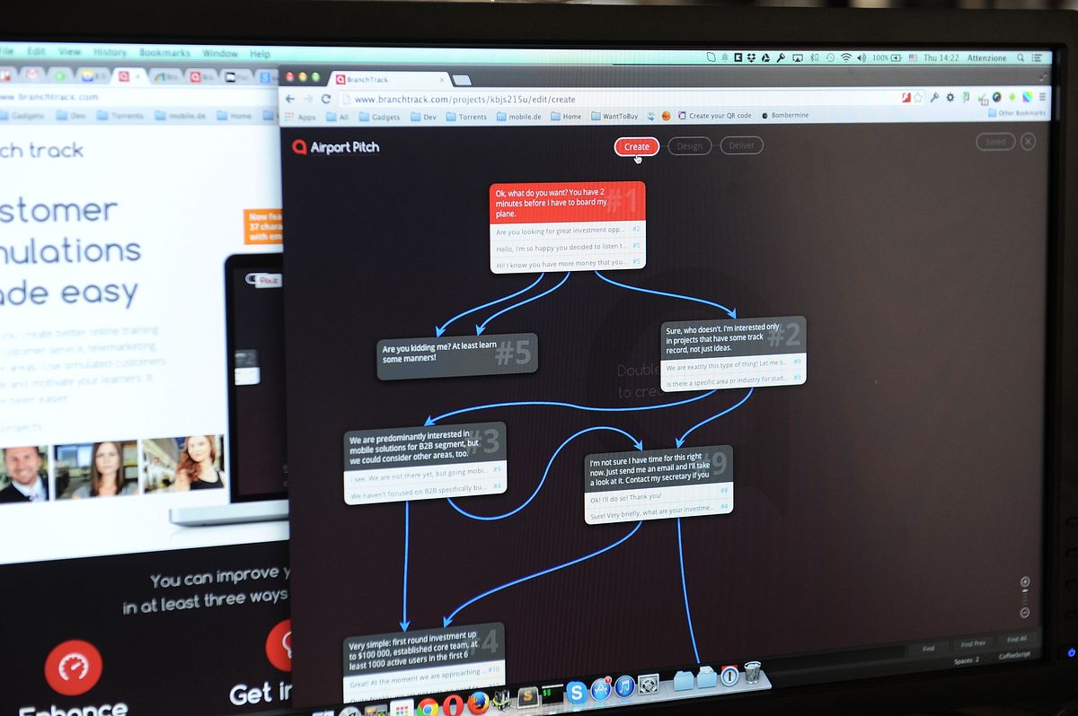 Sergejs skaidro, ka lielākā daļa e-mācību ir lineāras. Cilvēkiem no akadēmiskas vides tādas ir saprotamas, bet nederēs, lai pārdevējs iemācītos, kā rīkoties konkrētās situācijās un reaģēt uz dažādiem sarunas pavērsieniem. «Tā vietā, lai lasītu klientu apkalpošanas standartu, BranchTrack piedāvā virtuālu klientu. Darbinieks var izvēlēties dažādus atbilžu variantus uz klienta teikto. Tā veidojas dialogs un tā rezultāts būs atkarīgs no apmācāmā izraudzītajām atbildēm. Līdz ar to situācija ir pietuvināta reālajai dzīvei. Mērķis nav testēt darbinieka zināšanas, bet gan parādīt, ka iespējamie rezultāti un situācijas pavērsieni ir dažādi,» skaidro Raivis.