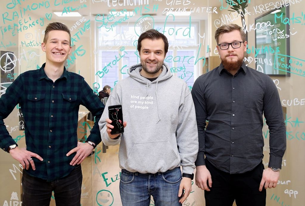SIA Asya pētnieki Valters Vēciņš (no labās), kompānijas līdzdibinātājs Ēvalds Urtāns un Kārlis Kuzma.