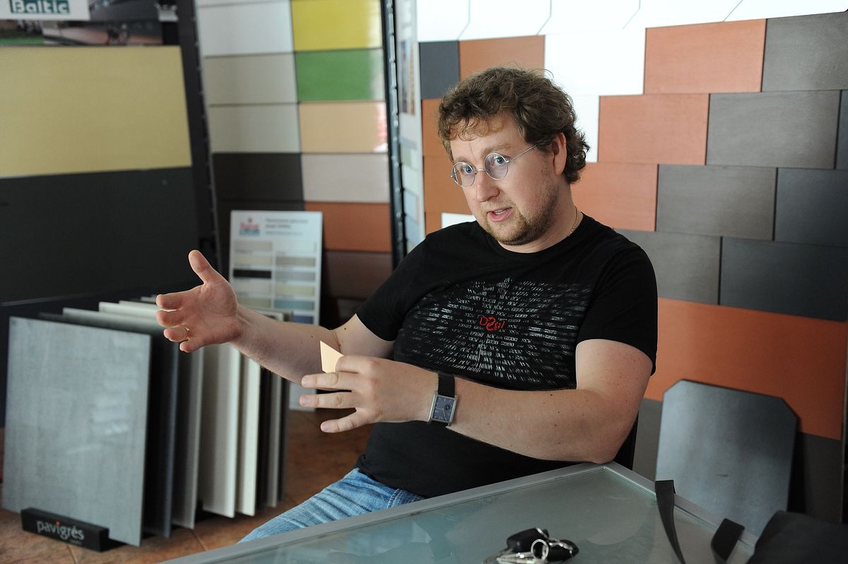 «Klientiem patīk pie mums atnākt, vienkārši pasēdēt, iedzert tēju, aprunāties, nevis tikai ieskriet, lai paņemtu kaut kādus paraugus. Klients te parasti ienāk, «iesēžas», nesteidzīgi aprunājas,» tā par savām Meža ielas biroja un veikala telpām stāsta Kaspars Grošs, SIA EOF tirdzniecības vadītājs. Bizness savā laikā sākts kā tirdzniecība, pārstāvot Latvijā vairākus fasāžu apdares materiālu ražotājus, taču pamazām viss izvērties kompleksā pakalpojumā.