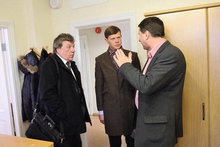 «No prasības samazināt birokrātiju mēs noteikti neatkāpsimies,» Ivars Puksts, Normunds Staņēvičs un Indra Lazdiņa apspriež stratēģiju.