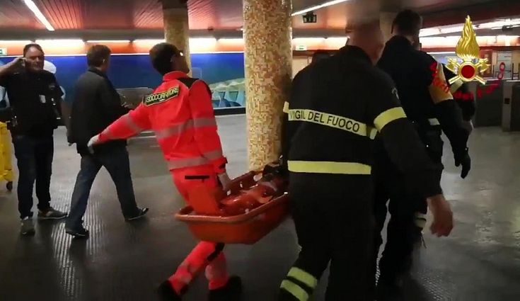 Romas mērs Virdžīnija Radži paziņoja reportieriem notikuma vietā, ka saskaņā ar aculiecinieku teikto Krievijas futbola komandas Maskavas CSKA fani «lēkāja un dejoja» uz eskalatora, līdz tas sabruka.