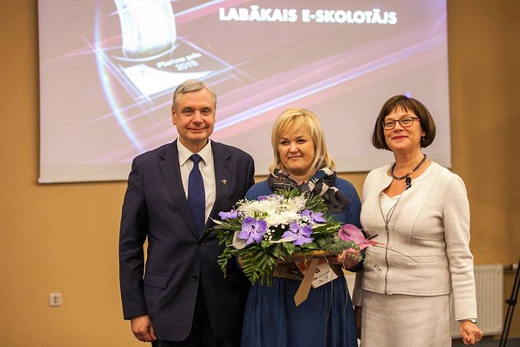 Par labāko e–skolotāju tika atzīta Talsu 2. vidusskolas informātikas skolotāja un direktora vietniece izglītības jomā Liene Katlapa. Šīs kategorijas partneris – Sabiedrība Tilde – labākajam e–skolotājam piešķirs naudas prēmiju; prēmijas fonds ir 1 000 EUR (ietverot nodokļus). Savukārt Microsoft Latvia speciālbalvu pasniedza Rīgas Angļu ģimnāzijas direktorei Maijai Kokarei.