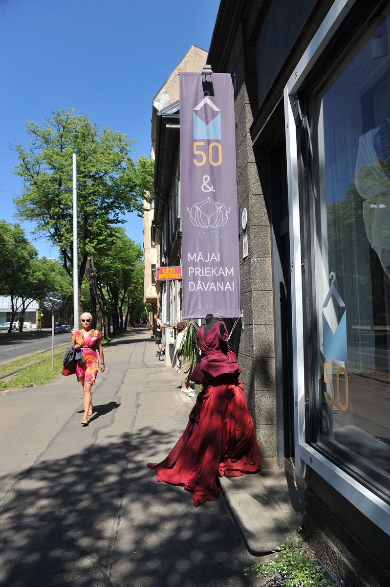 Miera ielas republikas veikaliņš M50 nesen nosvinēja savu pirmo dzimšanas dienu. Te nopērkami īpašnieču Elīnas Berklavas un Kristīnes Plaudes darināti apģērbi ar zīmolu M50, kas papildināti ar tautiskiem akcentiem. Līdzās tiem ir arī citu zīmolu apģērbs un aksesuāri.