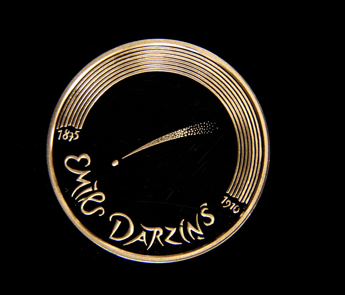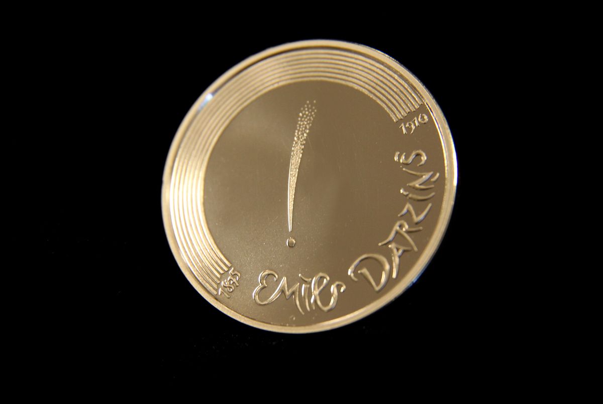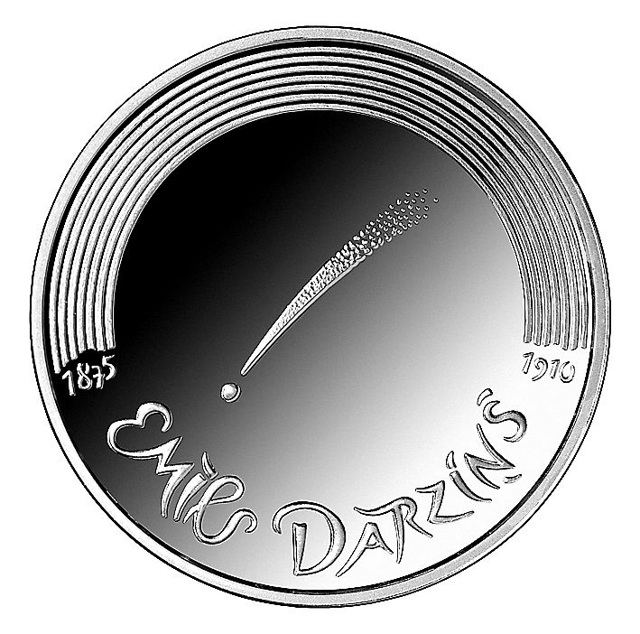 Monētas aversā redzama spoži uzmirdzējusi krītoša zvaigzne, gar monētas malu augšpusē lokveidā izkārtotas varavīksni simbolizējošas septiņas joslas. Savukārt monētas reversā izvietots uzraksts Valse Mélancolique. Saskaņā ar monētas mākslinieka I. Blumberga ieceri krītošā zvaigzne attēlo E. Dārziņa pāragro un traģisko aiziešanu no dzīves, bet varavīksnes septiņi loki raisa sarunu ar Dievu caur mūziku.