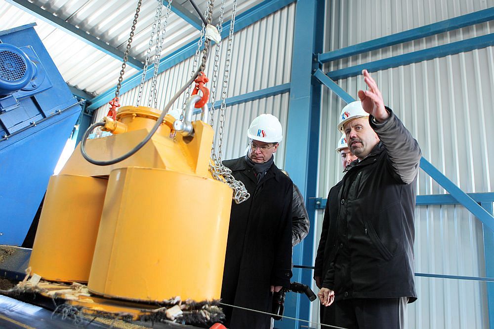 Rīgas domes priekšsēdētāja vietnieks Andris Ameriks (no kreisās), Rīgas domes Mājokļu un vides komitejas priekšsēdētājs Vjačeslavs Stepaņenko un AS Rīgas siltums valdes priekšsēdētājs Normunds Talcis apskata jaunatklāto AS Rīgas siltums siltumcentrāles Ziepniekkalns biokurināmo koģenerācijas staciju.