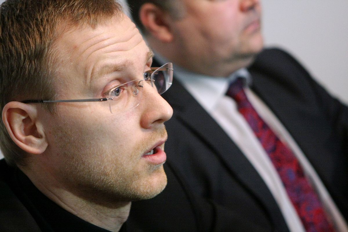 Aktieris Artuss Kaimiņš piedalās preses konferencē, kurā izvērtē līdzšinējo darbību kustībai Neesi vienaldzīgs, esi atbildīgs un biedrībai Esi atbildīgs!, kas saistītas ar Zolitūdes traģēdijā cietušo juridisko aizstāvību.