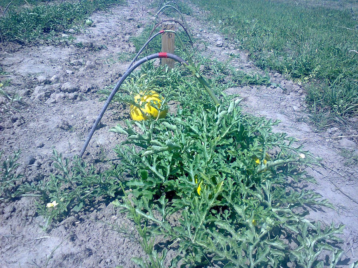 T. Ābeltiņa biznesa portālam db.lv atsūtīja sava arbūzu lauka fotogrāfijas. Viņa stāstīja: «Tie dēlīši ar cipariem nozīmē - šķirnes numurs un stādu daudzums. Sarkanās līmlentes uz lokiem apzīmē arbūzu skaitu uz viena stāda (uz viena stāda vidēji jābūt 4 arbūziem), šādā veidā vieglāk kontrolēt arbūzu ražīgumu.»