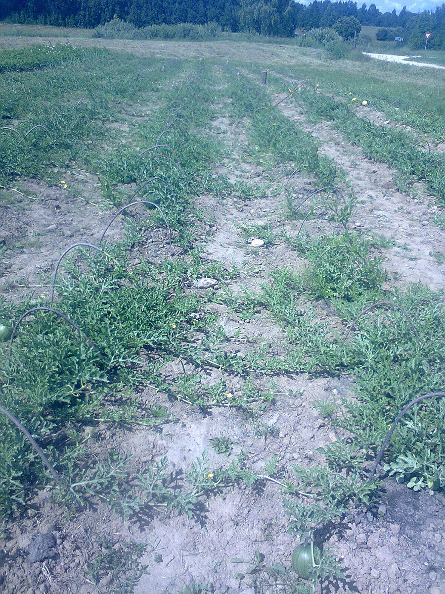 T. Ābeltiņa Dzirkstelei prognozējusi, ka pirmā arbūzu raža būs jūlija beigās, augusta sākumā. Tīrumā augot arī melones, bet tās neesot attaisnojušas cerības.