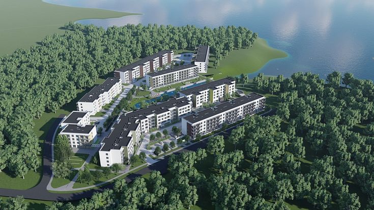 "Ezerjuglas" dzīvojamo ēku kompleksu plānots nodot ekspluatācijā 2022.gada aprīlī.