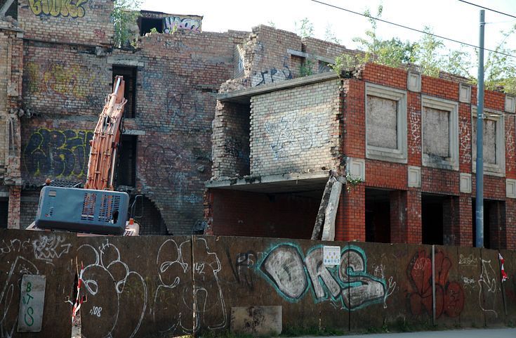 Šodien plašsaziņas līdzekļu un Rīgas pašvaldības pārstāvju klātbūtnē tika sākti ēkas Krišjāņa Barona ielā 88 A nojaukšanas darbi. Tā ir nepabeigta jaunbūve, kas klasificēta kā B kategorijas grausts. Ēkas fasādei ir apmetuma bojājumi, bet mūrī redzami izdrupumi un plaisas. Tā atrodas intensīvas gājēju un transporta satiksmes teritorijā. Ēkai blakus atrodas arī tirdzniecības un izglītības iestādes.