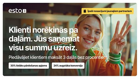 Klientu iespēju uzvaras gājiens ir sācies. Finanšu tehnoloģiju uzņēmums ESTO nodrošina dalīto maksājumu preču iegādei bez papildu komisijas, un e-komercijā tā izdodas piesaistīt aizvien vairāk klientu. Tirgotāji, kuri izvēlas saviem klientiem piedāvāt ESTO dalītā maksājuma iespēju, palielina apgrozījumu un piesaista aizvien jaunus klientus.