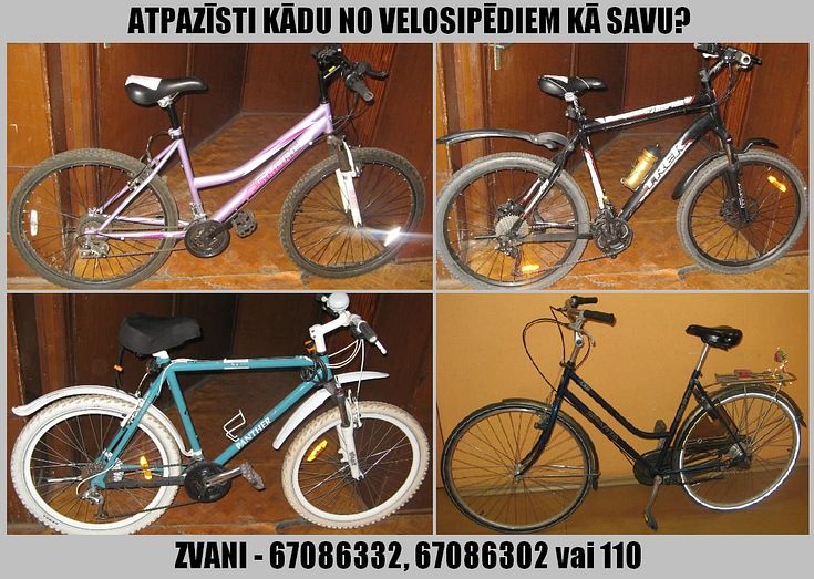 Policija aicina ikvienu aplūkot attēlā redzamos velosipēdus un atsaukties, ja atpazīst kādu no velosipēdiem kā savu.