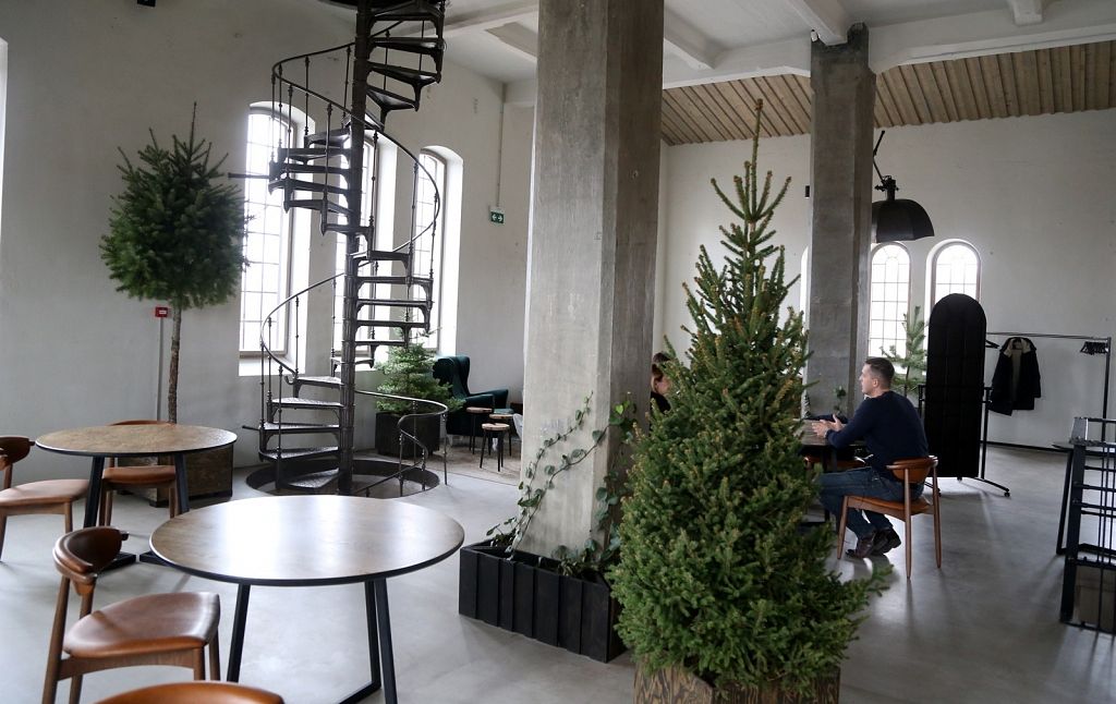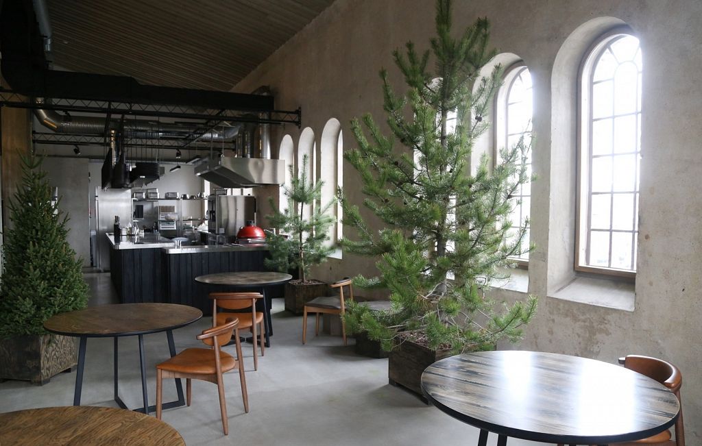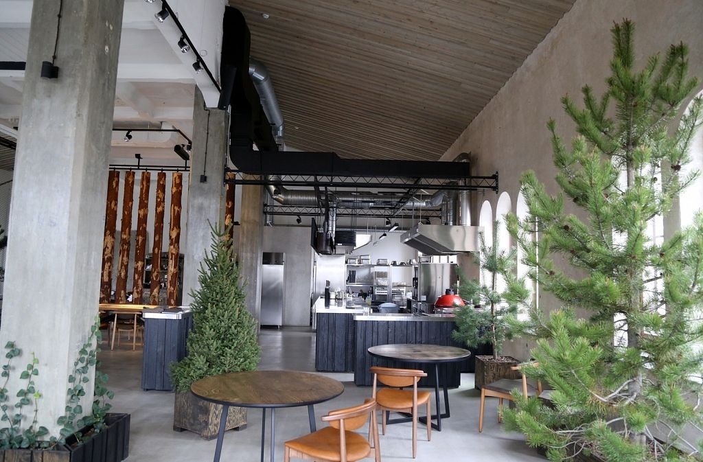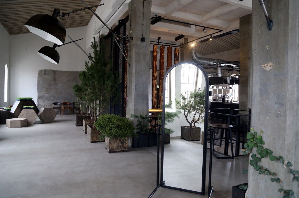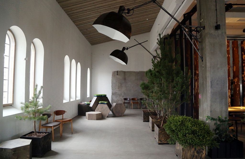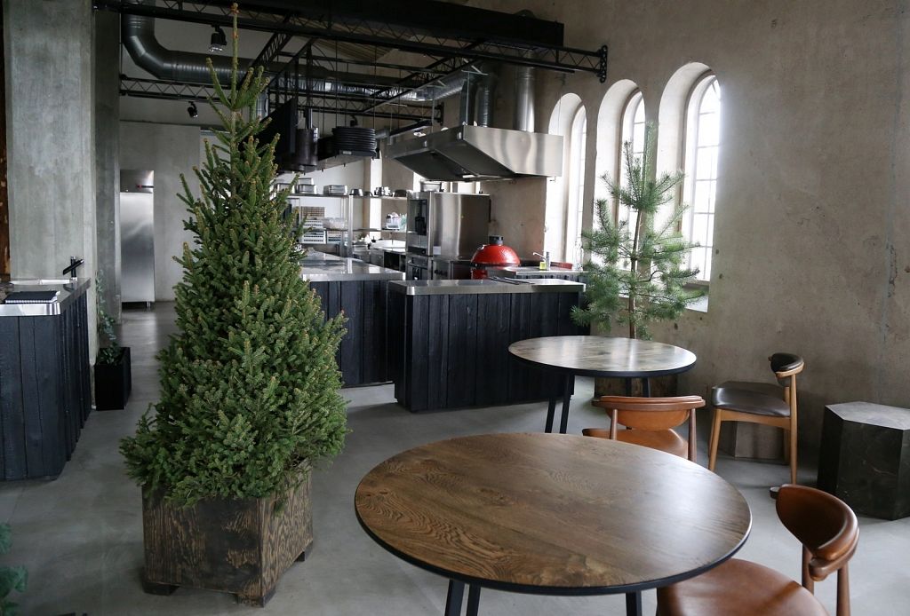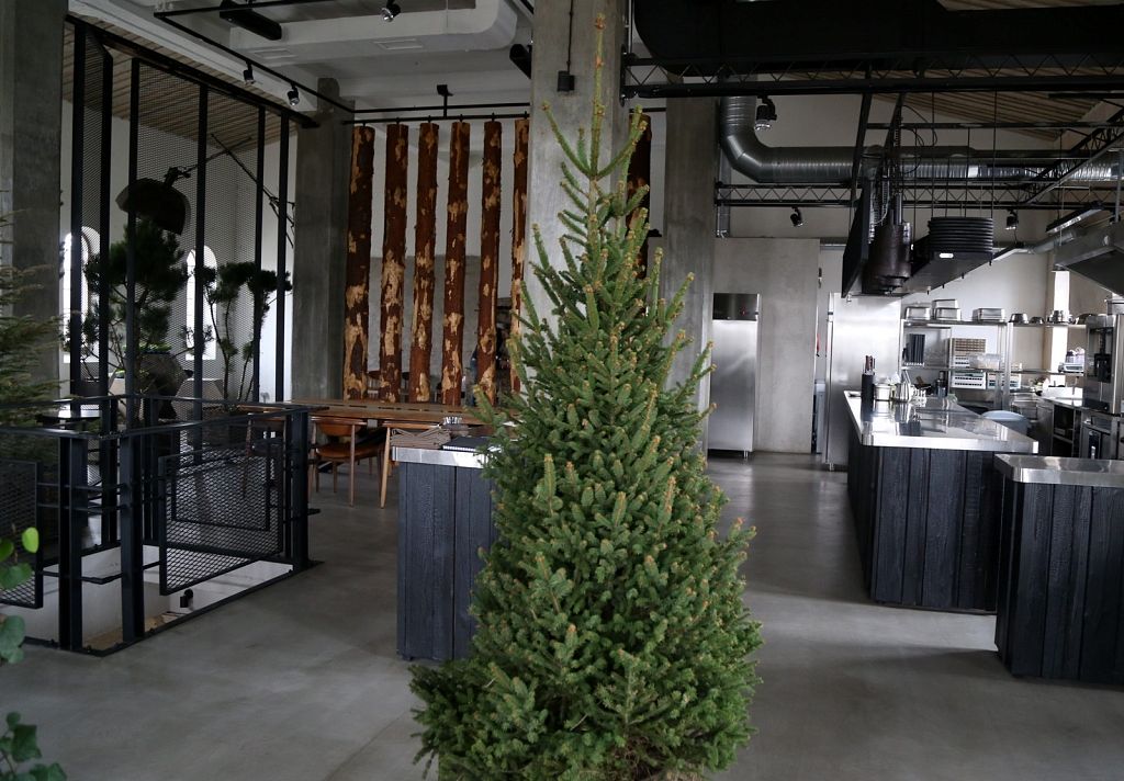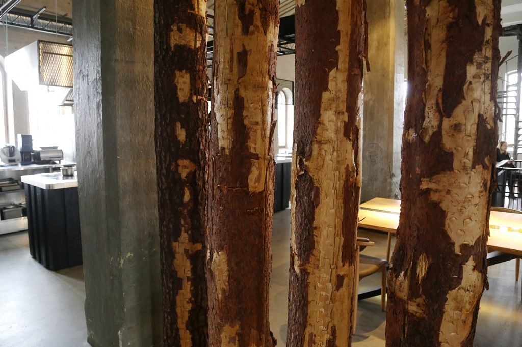 Vieta daudz ko pateica priekšā. Iepriekš te bija kokapstrādes rūpnīca, tāpēc nolēmām interjeru papildināt ar koka baļķiem, kā arī īstiem kokiem, lai saglabātu vietas vēsturi, nevis to iznīcinātu. Logu rāmji ir jauni, bet izveidoti tā, lai izskatītos seni. Svarīgi, lai saskan gan vieta, gan vīzija.