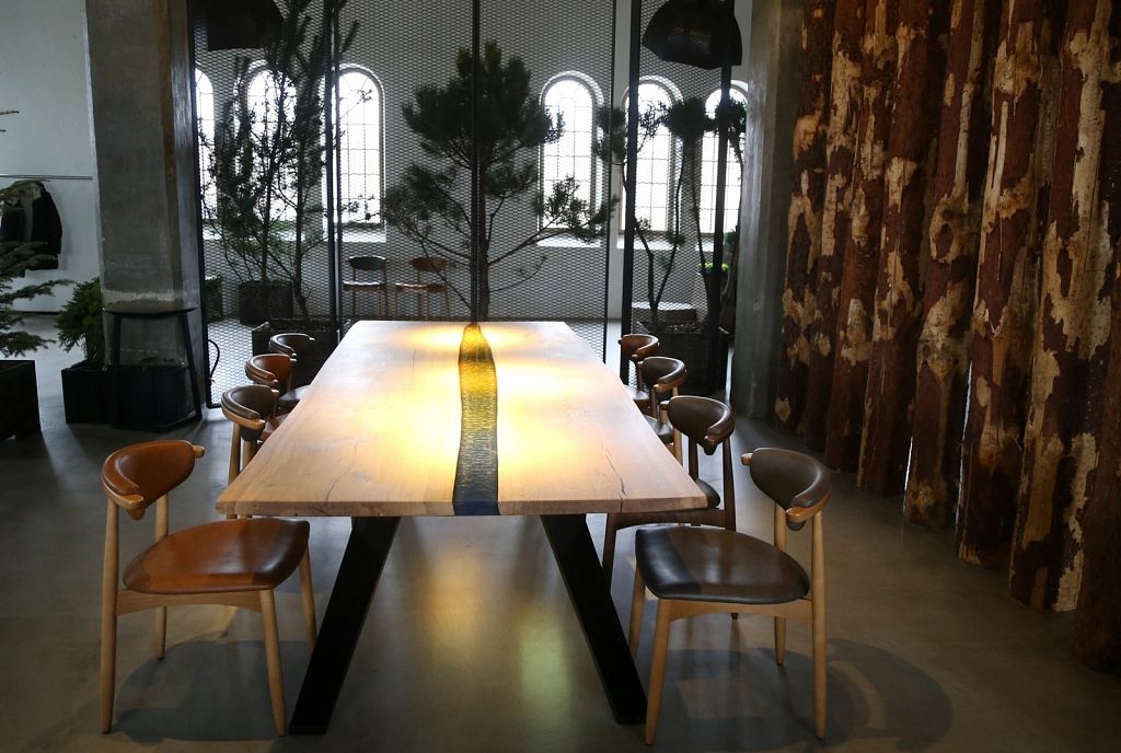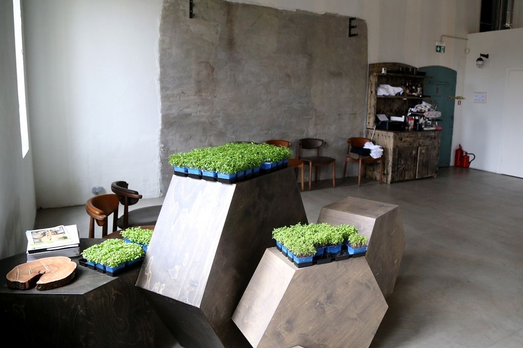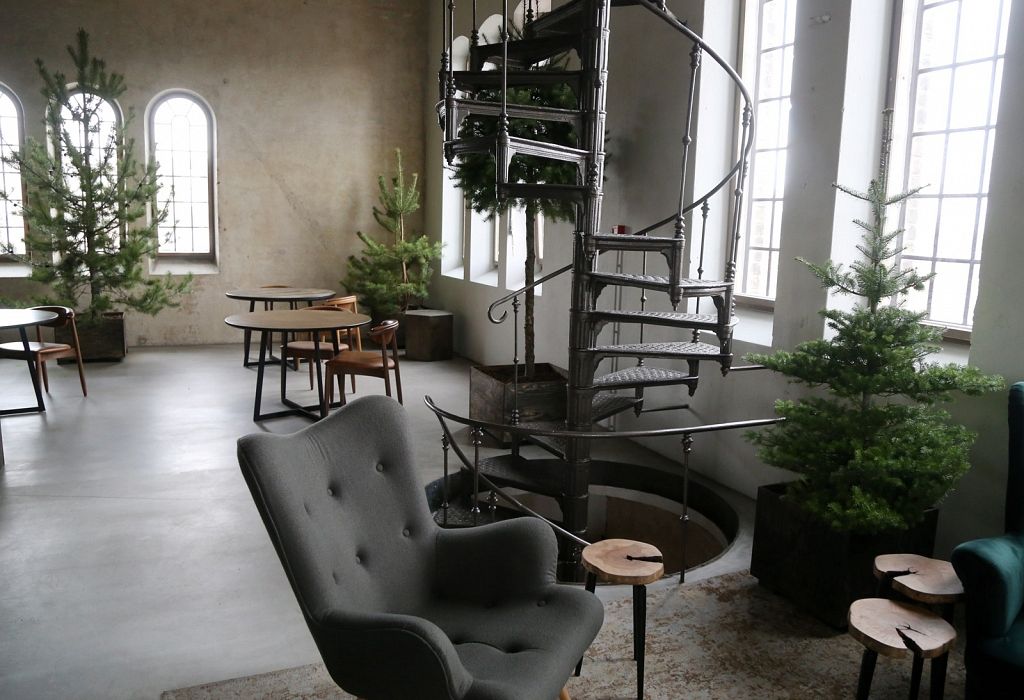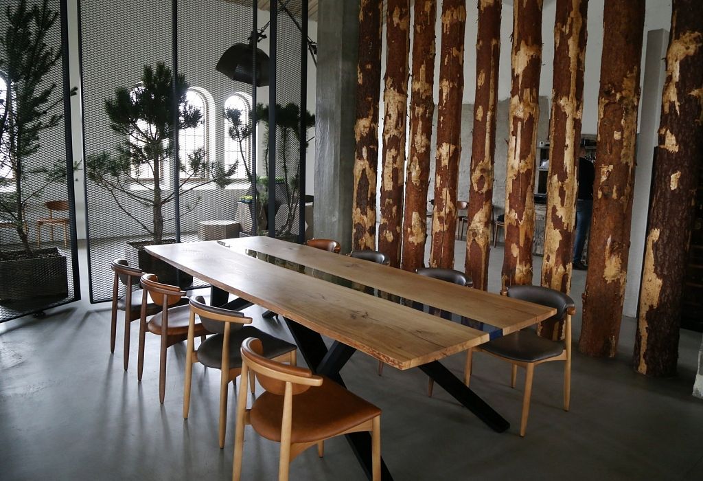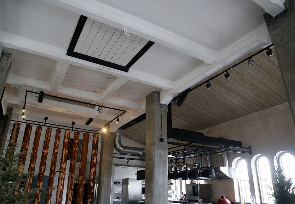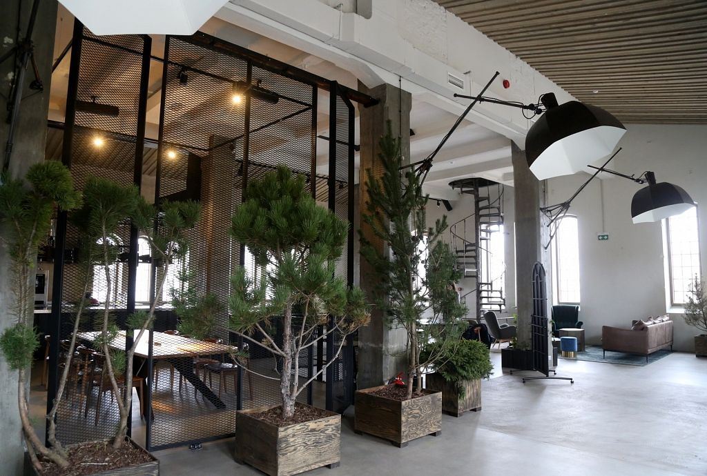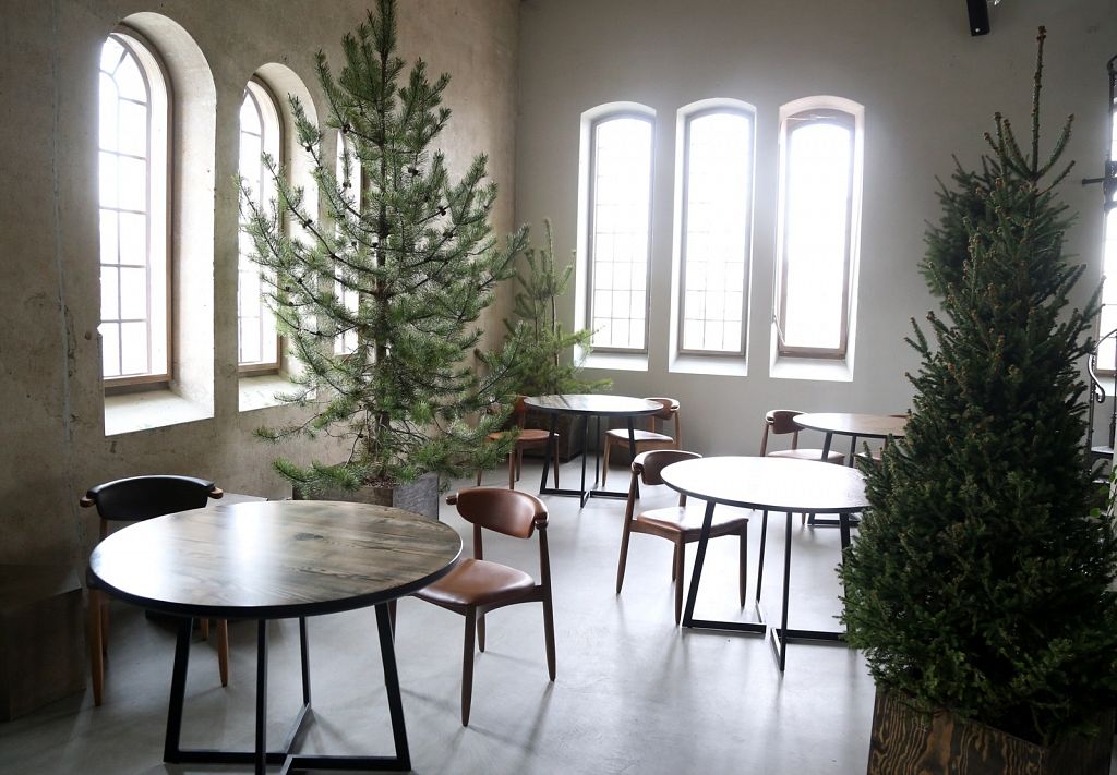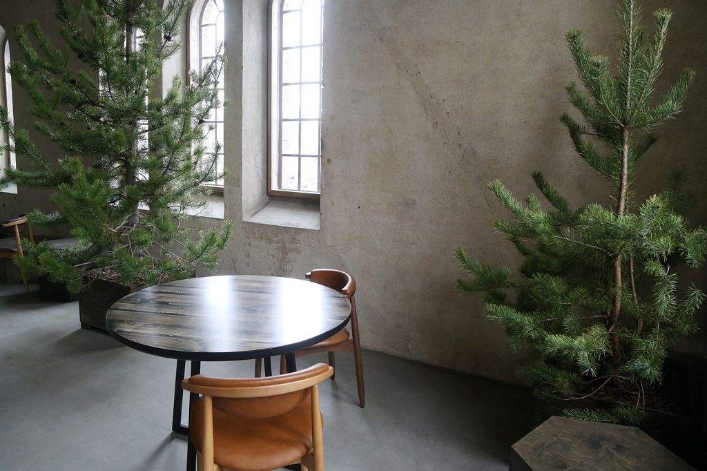 Vieta daudz ko pateica priekšā. Iepriekš te bija kokapstrādes rūpnīca, tāpēc nolēmām interjeru papildināt ar koka baļķiem, kā arī īstiem kokiem, lai saglabātu vietas vēsturi, nevis to iznīcinātu. Logu rāmji ir jauni, bet izveidoti tā, lai izskatītos seni. Svarīgi, lai saskan gan vieta, gan vīzija.