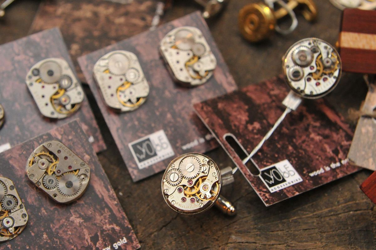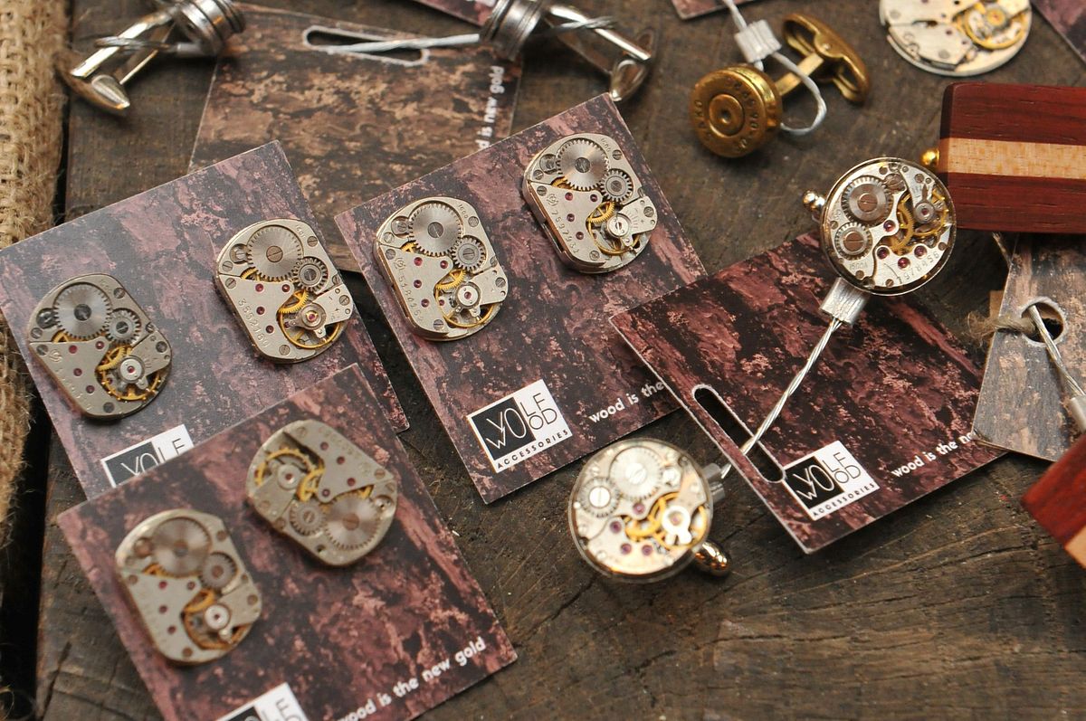 Volfwood piedāvā sieviešu un vīriešu aksesuārus no koka un ar rokaspulksteņu mehānismiem. «Sākās viss ar to, ka manam vīram Oskaram patika vilkt kreklus ar aproču pogām un viņš pats sāka sev izgatavot aproču pogas, jo neredzēja veikalos tādas, kādas vēlētos nēsāt,» stāsta Kristīne Volfa, aksesuāru zīmola Volfwood līdzautore. Viņas vīrs Oskars Volfs aptvēra, ka izgatavot koka aproču pogas nav nemaz tik sarežģīti. Sākumā tās uztaisīja sev, tad uzdāvināja draugiem, kuri mudināja, ka jānodarbojas ar to nopietnāk. Sākumā visi viņa darinātie aksesuāri bijuši no koka, tostarp aproču pogas, auskari, matu sprādzes, gredzeni. Savukārt šobrīd populārāka ir kāda cita zīmola veidota aksesuāru līnija – rotas ar rokaspulksteņu mehānismiem. Pirms kāda laika Oskara rokās nonāca vesela kaste ar veciem pulksteņiem. Mest tos atkritumos viņam bija žēl – Oskars sāka pulksteņus jaukt ārā un no mehānisma uztaisīja aproču pogas. «Patika, kā izskatās,» viņš saka. Kad pašu krājumi bija beigušies, Oskars apstaigāja visus zināmos pulksteņmeistarus un no viņiem iepirka mehānismus. Pamazām sortimentu papildināja arī sieviešu auskari un kaklarotas. Tagad šīs rotas ar pulksteņu mehānismiem pērk vairāk nekā aksesuārus no koka. «Pulksteņa mehānisms piesaista cilvēku uzmanību, turklāt vēl tā ir lietu otrreizēja izmantošana. Sabojātus pulksteņus nekā citādi nevar izmantot, kā vien izmest atkritumos vai līdzīgi, kā mēs tos tagad izmantojam rotās,» saka Oskars.