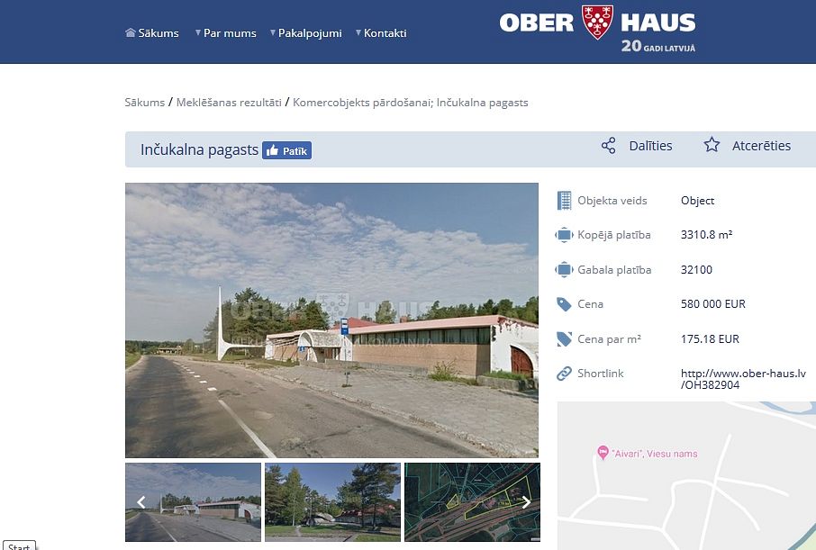 Pārdošanā ir zeme ar kopējo platību 3.21ha un ēka 3310.8 m2. «Objekts atrodas Vidzemes šosejas malā, stratēģiskā vietā ar intensīvu transporta kustību. Atrodas 40km no Rīgas un 10km attālumā no Siguldas. Ērta piebraukšana gan ar personīgo transportu, gan sabiedrisko transportu,» teikts sludinājumā.