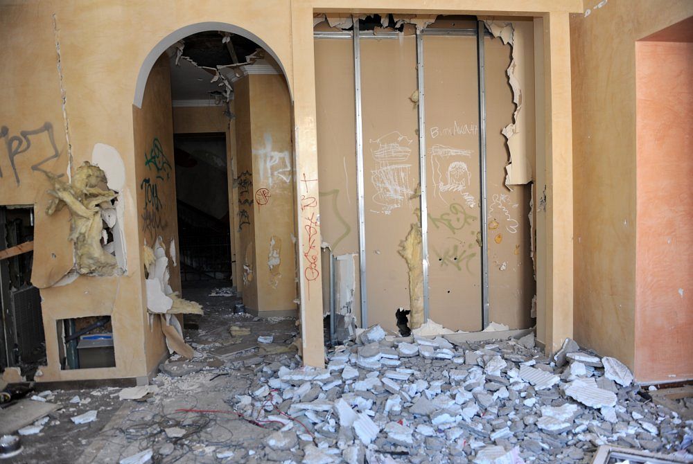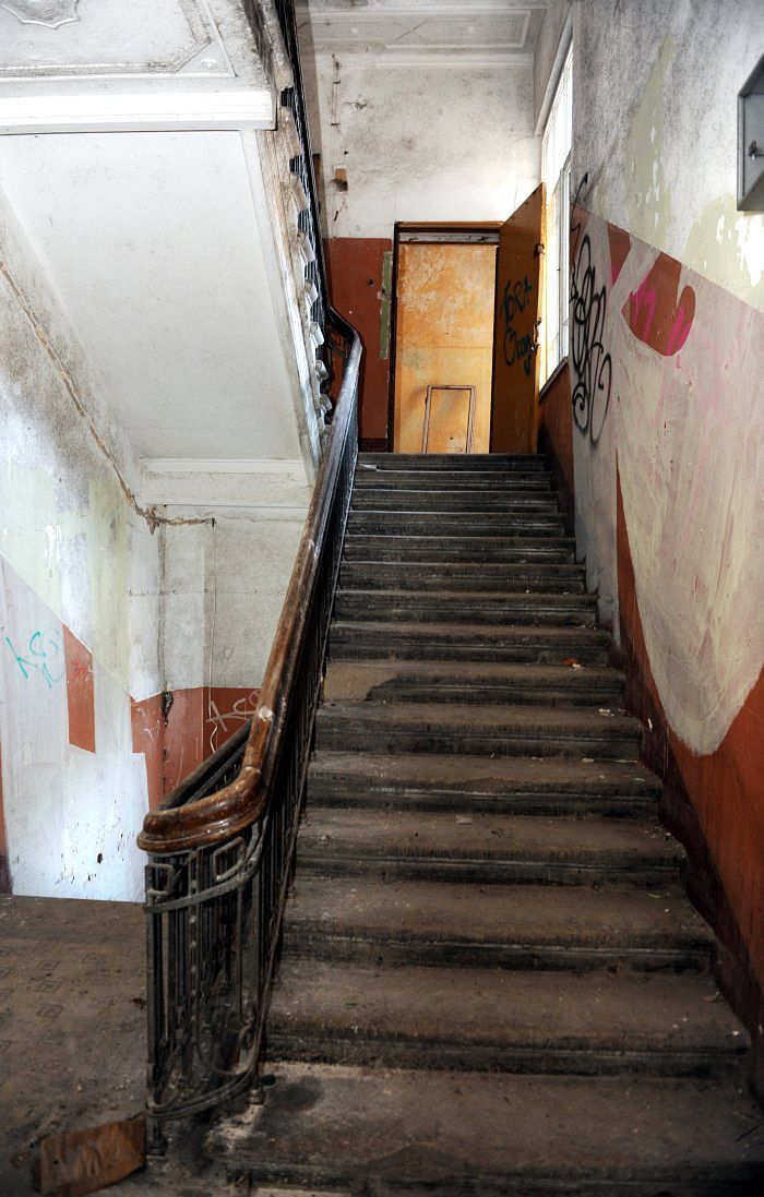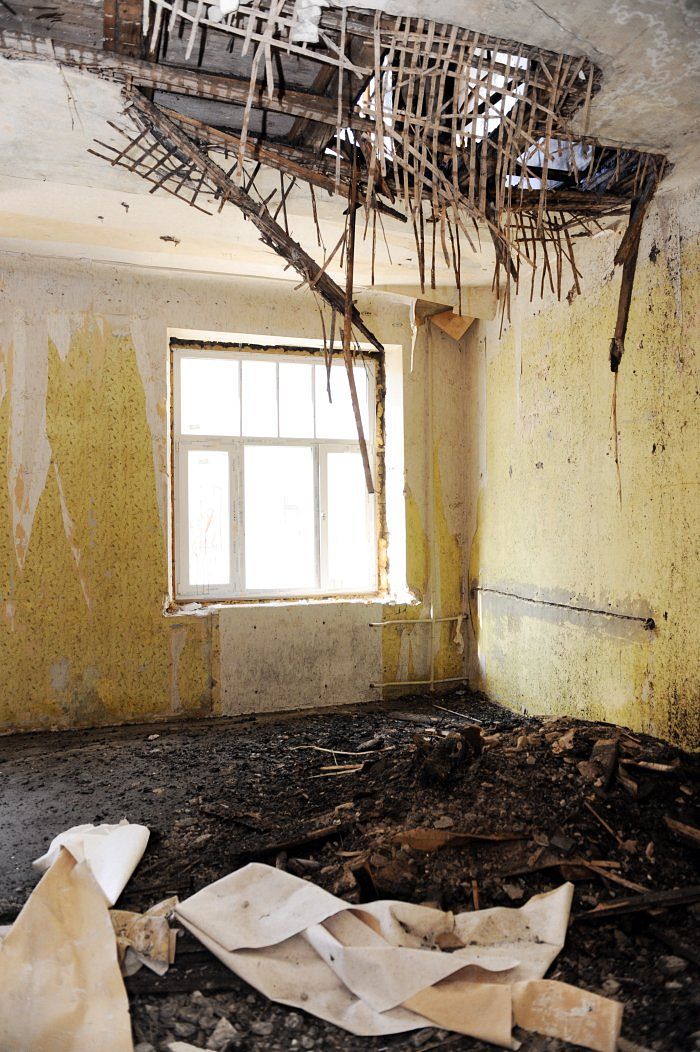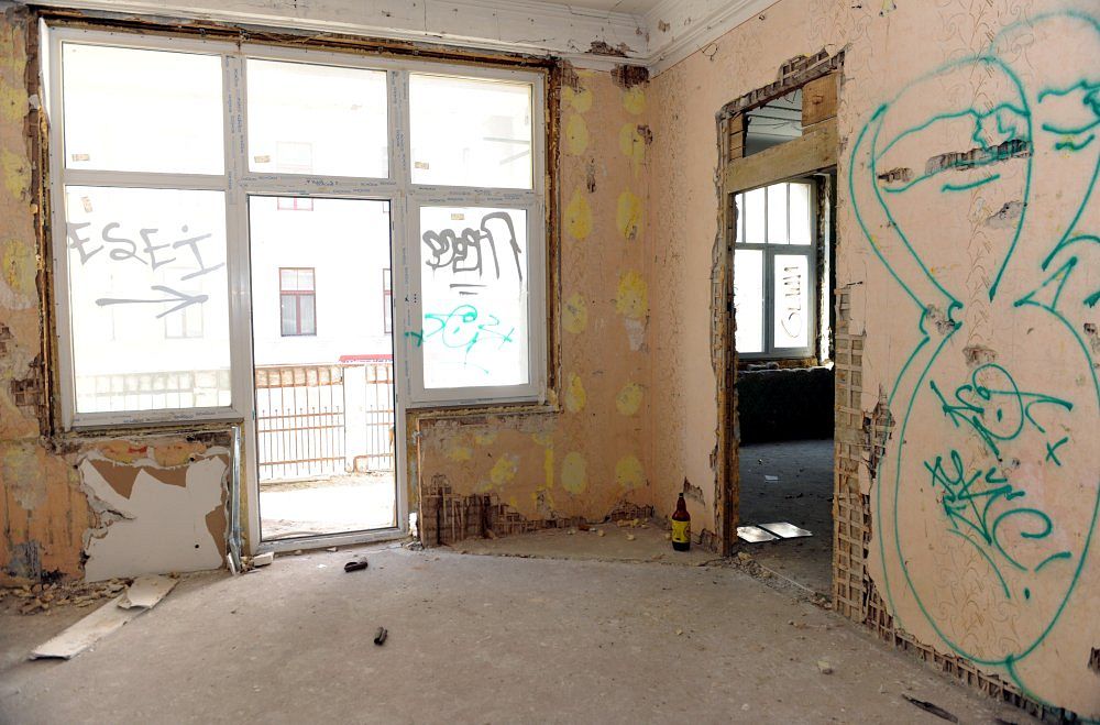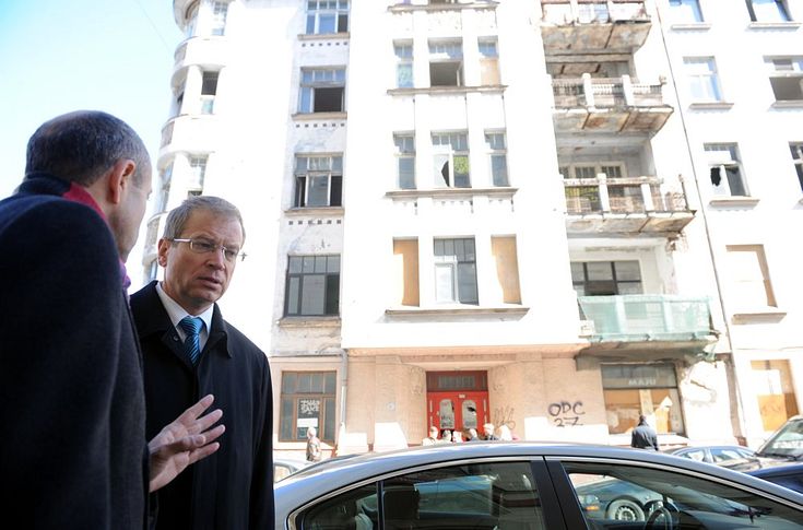 Departamenta direktors Oļegs Burovs (GKR) šodien darba sapulcē pie grausta skaidroja, ka nams pieder privātīpašniekam Ainaram Reinvaldam, bet viens dzīvoklis pirmajā stāvā ir SIA Grandpark STB īpašums. Abiem īpašniekiem aprēķinātas soda naudas - Reinvaldam piemērotās sankcijas sasniegušas jau 1820 latu, savukārt Grandpark STB soda naudas aprēķinātas 1100 latu apmērā. Neviens no īpašniekiem nevienu sodu nav nomaksājis un ignorē pašvaldības aicinājumus īpašumu sakārtot.