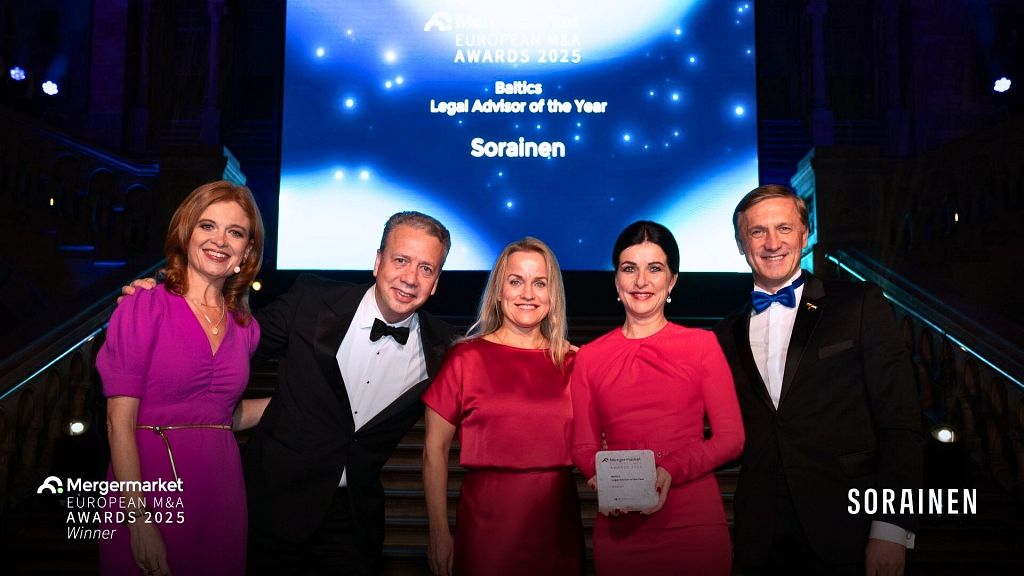Zvērinātu advokātu biroja Sorainen konsultatīvais darbs ir novērtēts kā “Gada labākais M&A juridiskais konsultants Baltijas valstīs” un “Gada labākais M&A juridiskais konsultants Centrāleiropas un Austrumeiropas valstīs” Mergermarket European Awards apbalvošanā.