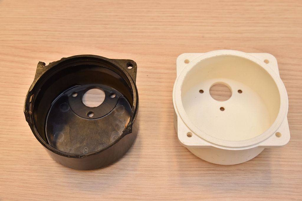 Pa kreisi - līdzšinējā detaļa, pa labi - ar 3D printeri izgatavotā.