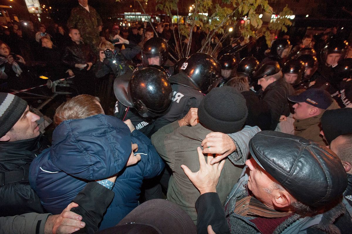 Vairāki simti demonstrantu pavadīja nakti no pirmdienas uz otrdienu pie Ukrainas Centrālās Vēlēšanu komisijas ēkas. Naktī demonstrantu apmetni centās demontēt specvienības Berkut kaujinieki, vēsta Lenta.ru.