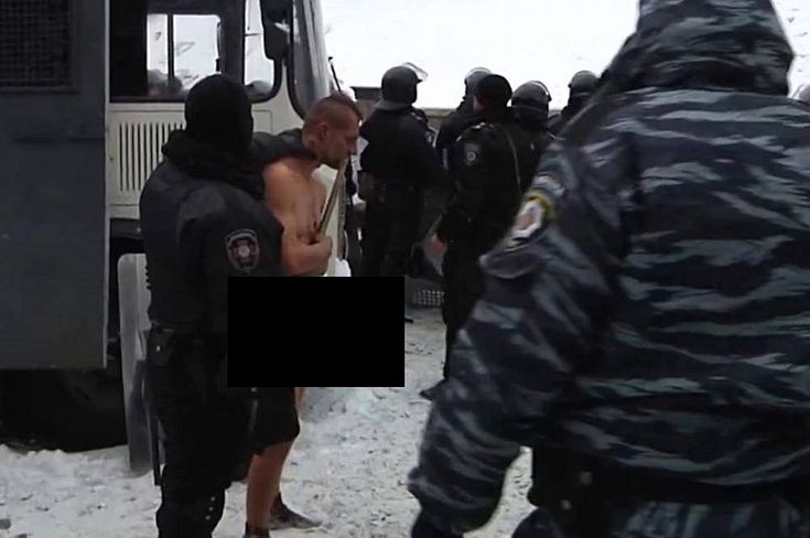 Sašutumu sociālo tīklu lietotājos izraisījis arī kāds video, kurā speciālās vienības Berkut miliči salā pliku izģērbuši kādu protestētāju un uzņēmuši viņa fotogrāfijas. Milicijas oficiālie pārstāvji jau atzinuši savu vainu un atvainojušies par ņirgāšanos par aizturēto protestētāju.
