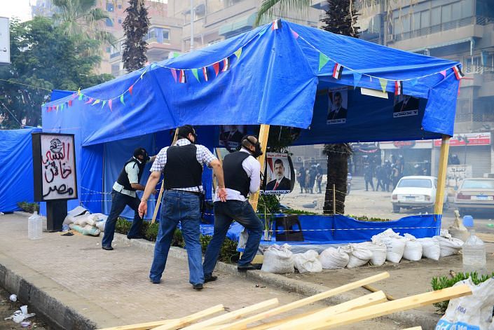 Policija iebruka divās nometnēs Kairā – Rabā un Nahda, kur M. Mursi atbalstītāji pulcējās kopš brīža, kad viņš jūlijā tika gāzts. Grupas solījušas, ka demonstrācijas turpināsies, līdz M. Mursi tiks atjaunots amatā.
