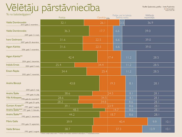 Ja ņem vērā visus balstiesīgos Latvijas iedzīvotājus, kā tas darīts šajā vizuālajā stāstā, tad skaidri redzams, ka koalīcija, kura pārstāvētu vairāk nekā 50 % Latvijas balstiesīgo iedzīvotāju tā arī nekad nav tapusi. Līderos ir otrā Andra Šķēles valdība, kur koalīcija reprezentē 48.3 % balstiesīgo, bet vismazāk vēlētāju pārstāvējusi Induļa Emša valdība – par partijām šajā koalīcijā balsojuši tikai 25.4 % balstiesīgo iedzīvotāju.