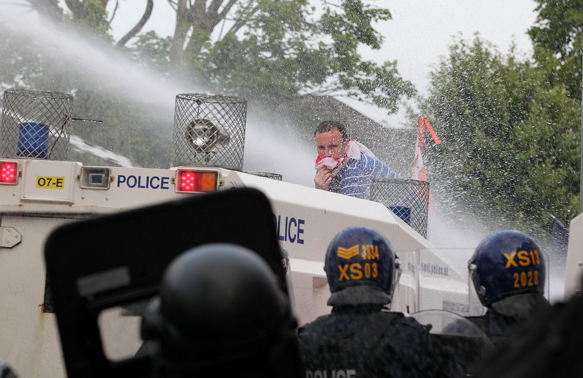 Trešo nakti pēc kārtas Ziemeļīrijā turpinās nemieri, sadursmēs ar policiju iesaistoties Ziemeļīrijas unionistiem – Ziemeļīrijas galvaspilsētā Belfāstā nemiernieki apmētājuši drošībsargus ar degmaisījuma pudelēm un citiem priekšmetiem, vēsta Irish Mirror.